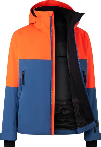 "The hem of the jacket can be individually adjusted with a drawstring and the sleeves are adjustable with Velcro fasteners. Jersey-u00c4sleeve cuffs with thumb holes provide additional comfort. The left sleeve features a stylish FIRE+ICE patch and a zippered ski pass pocket, ideal for winter sports enthusiasts. Inside, two meshpockets and a snow guard with press studs offer further practical benefits"