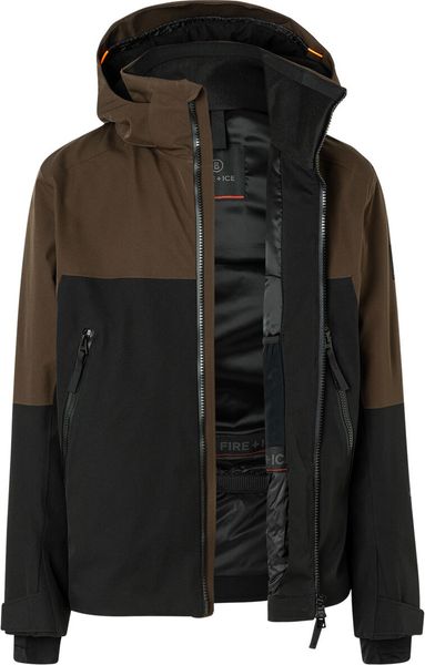 "The hem of the jacket can be individually adjusted with a drawstring and the sleeves are adjustable with Velcro fasteners. Jersey-u00c4sleeve cuffs with thumb holes provide additional comfort. The left sleeve features a stylish FIRE+ICE patch and a zippered ski pass pocket, ideal for winter sports enthusiasts. Inside, two meshpockets and a snow guard with press studs offer further practical benefits"