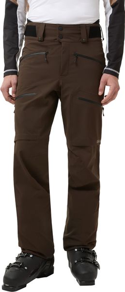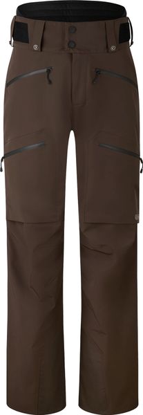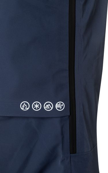 "These trousers impress with their technical properties: made from a three-layer, waterproof and breathable 4-Way-Stretch material, they offer an impressive wateru00e4ule of 20,000 mm and breathability of 20,000 g/mu00b2/24h. The welded seams and integrated snow guard with elasticated hem offer additional protection from the elements, while the ergonomically shaped knees with reflective print ensure safety and freedom of movement."