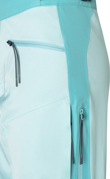 "Practical details such as the four zipperpockets at the front offer plenty of storage space for your essentials. The long, side zippered slits allow easy ventilation and adaptation to changing weather conditions. The snow guard with elasticated cuffs at the hem and the tonal edge protection on the inner leg hem offer additional protection from the elements and ensure durability"