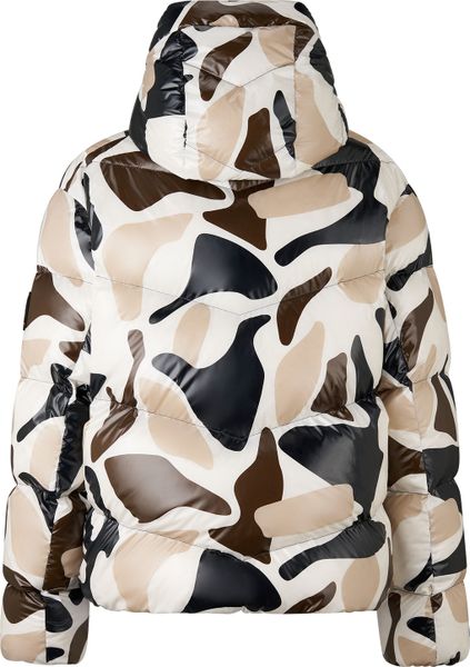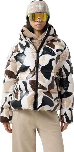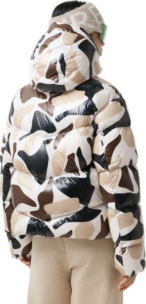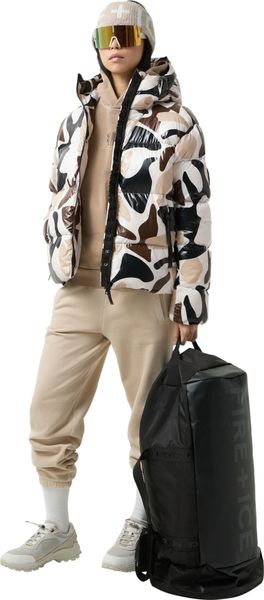 "Stylish jacket with all-over print, water-repellent, reflective details and environmentally friendly down blend filling."