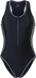 "High-quality swimsuit for water sports with racerback, zipper and jacquard tapes for optimum comfort and style."