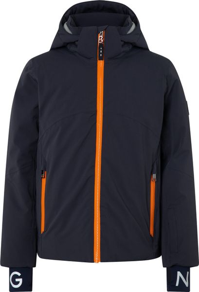 "The Justus-t ski jacket from Bogner is the perfect choice for young skiers who value style and functionality. This children's jacket impresses with its modern color blockingdesign and reflective details, which are not only visually appealing but also ensure additional safety on the slopes. The padded stand-up collar and detachable hood with reflective mesh lining offer optimum protection from wind and weather, while the long sleeves with internal thumb loops in a reflective logo design provide additional comfort."