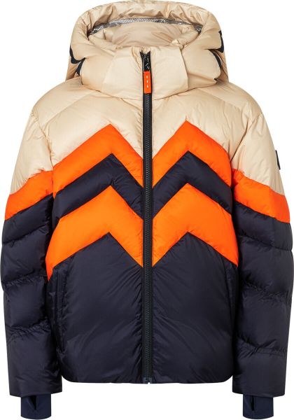 "The Maddy-d ski jacket from Bogner is the ideal choice for young skiers who value style and functionality. This high-quality kids' skidown jacket impresses with its regular fit and striking color blockingdesign, which is combined with a unique yetiprintlining. The jacket is made from a water-repellent miniripstop quality and offers optimum protection from the elements thanks to a wateru00e4ule of 20,000 mm and a breathabilityu00e4t of 30,000 g/mu00b2/24h."
