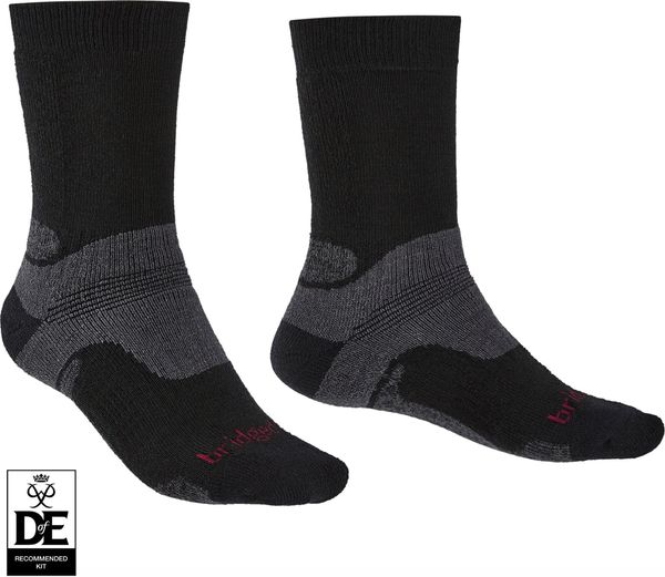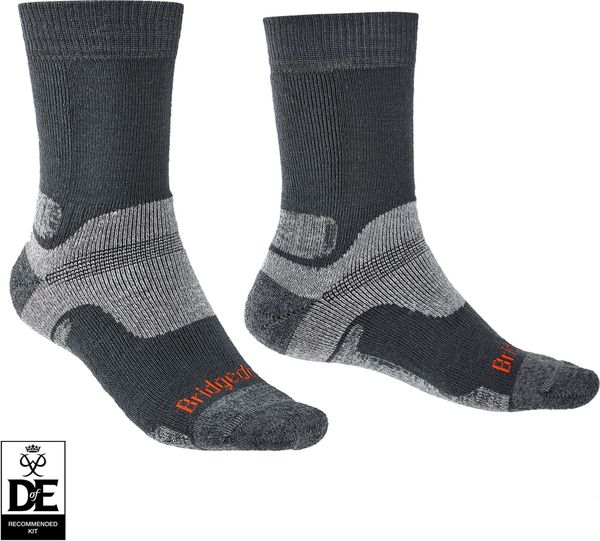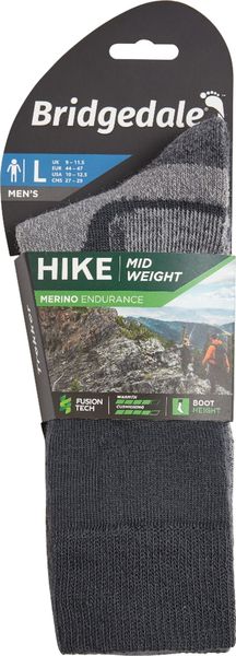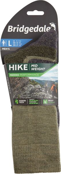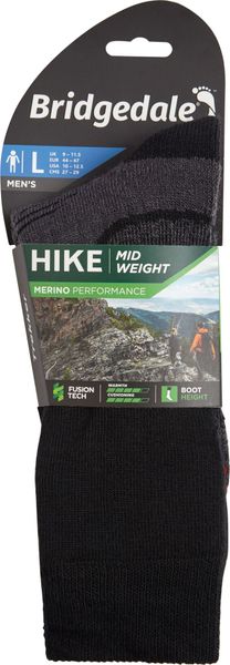 "The Hike Midweight Performance Boot from Bridgedale sets new standards for hiking socks and is the ideal choice for demanding hikes and expeditions. With an advanced zonal cushioning system, this sock offers unmatched comfort and support on long or multi-day hikes. The innovative Merino Performance Fusion Technology provides elastic cushioning, balanced insulation and effective moisture management, resulting in all-day comfort that can withstand even the toughest conditions."