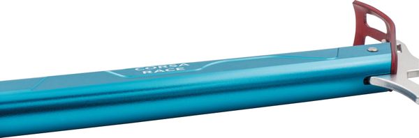 "The aluminum shaft of the Corsa Race is designed to achieve minimal weight thanks to its reduced dimensions without a roll protection insert. This makes it particularly attractive for ski tourers who want to save every gram. The head section of the pick is equipped with an opening that allows the Corsa Leash, which is available separately, to be attached, thus ensuring additional safety."