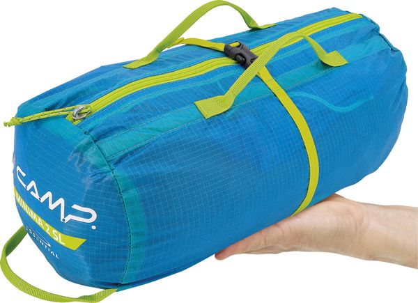 "The Minima 2 SL tent from C.A.M.P. offers maximum lightness and comfort for two people. Thanks to the reduced diameter frame and the ultra-light nylon wall, it is ideal for longer hikes. This tent is not only extremely light, but also robust and waterproof, making it a reliable companion in all weather conditions."