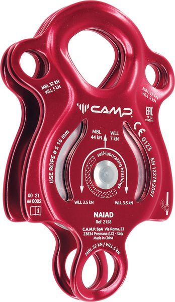 "The Naiad pulley from C.A.M.P. is an indispensable tool for anyone who wants to master complex maneuvers and the construction of rope bridles. This extremely stable and versatile pulley is specially designed for high loads, making it ideal for demanding applications. With its generously dimensioned pulley and self-lubricating plain bearings, the Naiad pulley offers an optimum solution for light loads and low speeds"