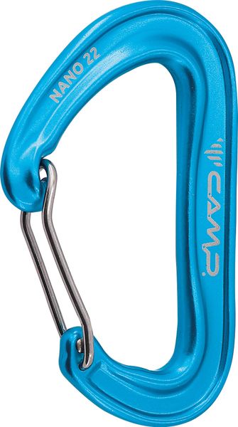 "The Nano 22 from C.A.M.P. is an outstanding carabiner that has been specially developed for climbers who value lightness and safety. As a further development of the proven Nano Wire and Nano 23, the Nano 22 offers even less weight and improved functionality. With an impressive strength of 9 kN with an open gate, it ensures maximum safety in demanding situations. The innovative design of the Nano 22 is characterized by an optimized carabiner shape that enables rope-friendly gliding and protects the gate with an improved nose."