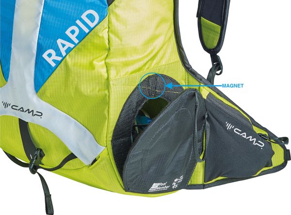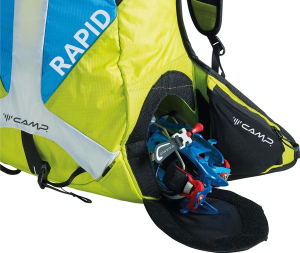 "The Rapid is the ideal companion for ski tourers who value lightness and functionality without compromising on comfort. This backpack from C.A.M.P. u00fcconvinces with innovative details that have been specially developed for ski mountaineering. The highlight is the tunnelcrampon compartment, which is equipped with a Velcro fastener and magnets to ensure safe and quick access u2013 even without removing the backpack. In addition, the compartment can be connected to the main compartment thanks to an inner double zipper, which makes organization easier"