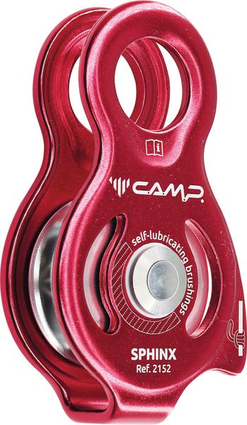 "The Sphinx from C.A.M.P. is a remarkable, ultra-compact rope pulley that has been specially developed for climbers who value lightness and ease of use. With its firm side parts and comfortable handling, it is a reliable companion on every climbing tour. The large sleeve makes it easy to attach to the climbing harness using a carabiner, so it is always ready to hand"