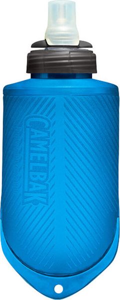 "The innovative design of the Quick Stow Flask allows the bottle to be folded up empty and easily stowed in your running vest, belt or even in your hand. The classic one-piece silicone bite valve from Camelbak ensures fast and efficient hydration by sealing itself after every sip. The cap is also dishwasher-safe and makes cleaning easier."