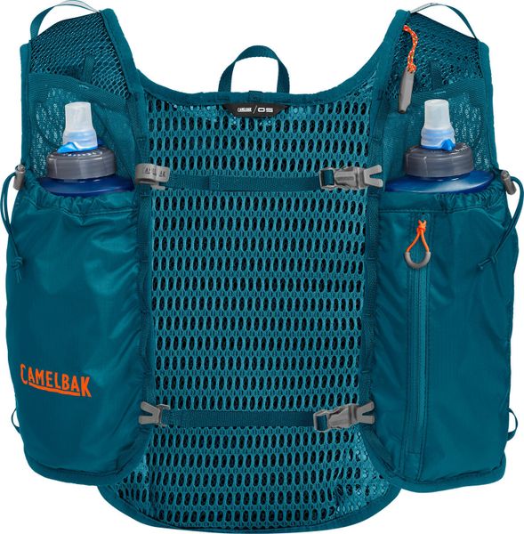 "The Trail Run Vest 1L from Camelbak is the ideal companion for anyone who doesn't want to compromise on speed hiking or running. This unisex vest is specially designed for outdoor activities such as hiking and impresses with its well thought-out features. Made from recycled N70D ripstop nylon with a C0 DWR coating, it not only offers protection and durability, but also protects the environment through the use of safe chemicals and recycled materials."