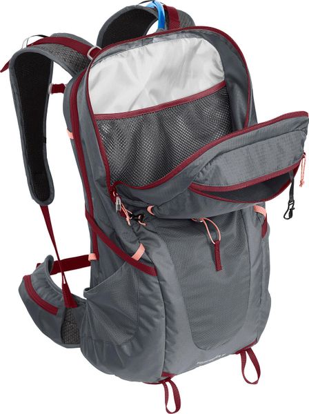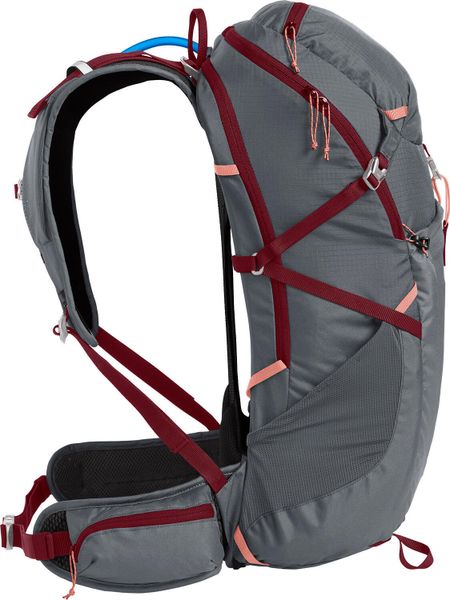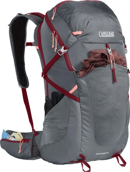 "For spontaneous adventures, the stretchu00dcover pocket offers space for rain jackets or shoes. The command centerharness allows quick access to important items such as phone and keysu00fcssel. Equipped with reflective accents, visibility is guaranteed even when the sun goes down. The Camelbak Women's Fourteener 30 is the ideal companion for anyone who loves the outdoors and wants to go on long hikes"