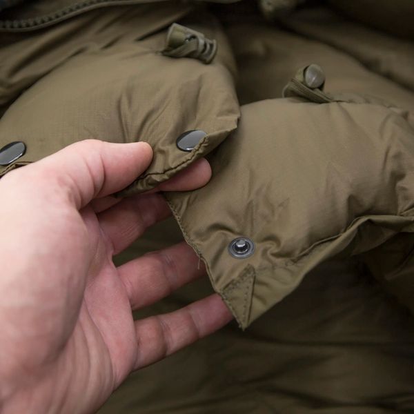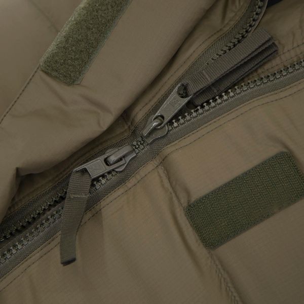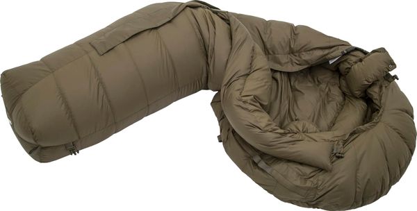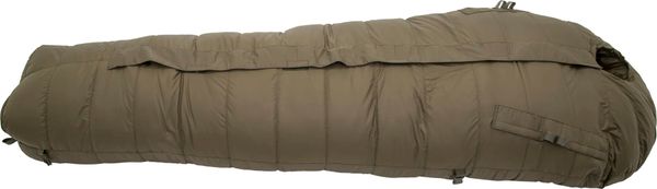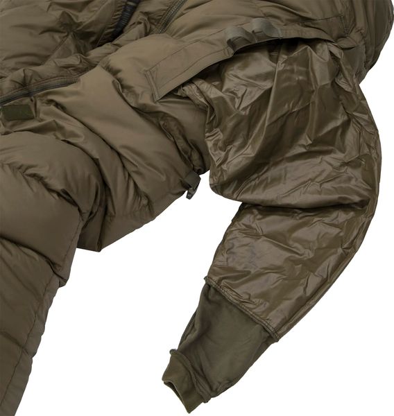 "This uncompromising high quality sleeping bag has been developed for extreme conditions. The proven H-chamber construction with elasticated stays and differential cut allows the down to reach its full loft and prevents chaffing at the knees and elbows. The two-wege-reiu00fold closure on the front of the sleeping bag can be opened in the foot section for ventilationu00f6. Another important feature is the fully integrated pre-shaped hood, which can be closed to a very small breathing hole using a pull cord. Opening the zipper on the underside ensures quick entry and exit, whereby the foot area can be fixed and the sleeping bag acts as a coat. The arms can be stowed in the insulation."