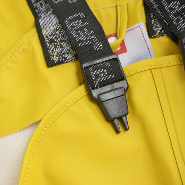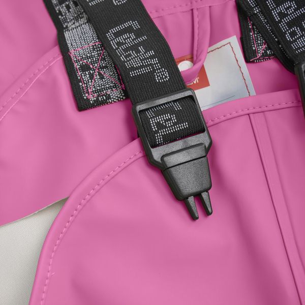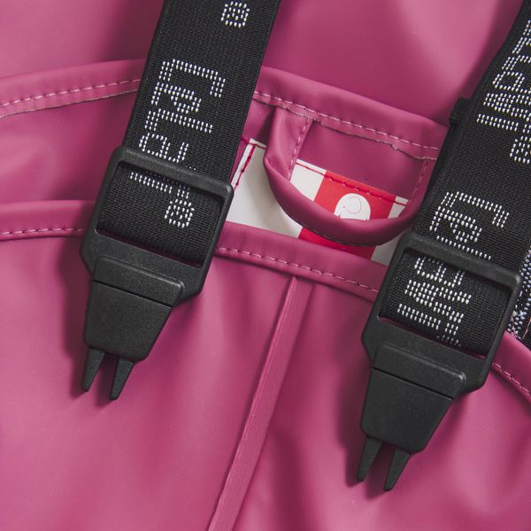 "This rain set is not only practical, but also stylish, as it is available in different colors and offers a good fit for both boys and girls. The well thought-out details such as elasticated ankles and wrists, elasticated boot straps and reflective stripes guarantee safety and freedom of movement. The rain trousers are available in smaller sizes as overalls with adjustable braces and in larger sizes with an elasticated waistband."