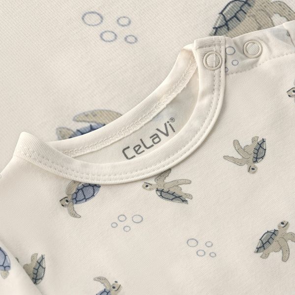 "Discover the adorable all-overprint jumpsuit from CeLaVi, specially designed for your child's ultimate comfort and style. This unisex romper is made from soft bamboo fabric and offers a comfortable, breathable fit thanks to its stretch cotton material. The short sleeves and legs make it the ideal choice for warmer days. Practical poppers on the shoulder and between the legs make it easy to put on and take off, which is particularly useful for everyday wear with small children."