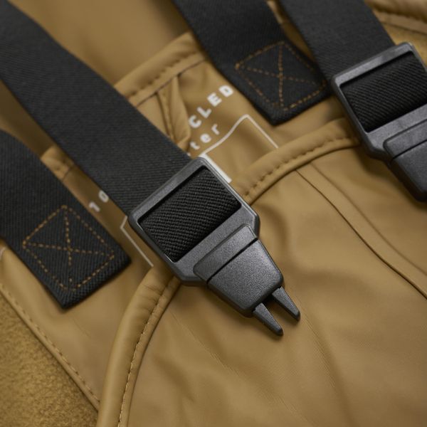 "The overall is equipped with straps that can be easily adjusted thanks to the plastic buckles at the front. Press studs at the sides make it easy to put on and take off. The overall is also lined, which provides additional warmth on cold and wet days. As a unisex garment, it is equally suitable for men and women who value functionality and comfort. The PU coverall is also certified in accordance with the GRS CERES-0366 standard and therefore meets high standards in terms of sustainability and environmental friendliness"