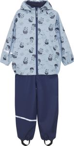 "The practical rainwear set from CeLaVi is the perfect choice for little adventurers who want to play outside even on wet days. This set consists of a stylish jacket with an attractive all-overprint and a plain-colored bottom. The jacket is equipped with a waterproof zip and has an adjustable hood that can be removed if required. The reflective stripes on the arms and legs ensure additional safety in road traffic."