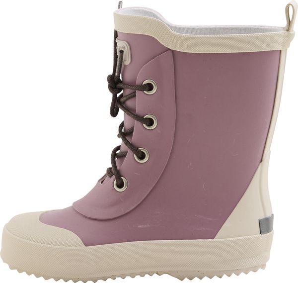 "Fashionable sneaker-look rain boots made from natural rubber with reflective stripes and a warm wool lining."
