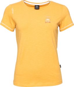 "The feminine fit with integrated waist and the playful decorative seams give the T-shirt an elegant touch, while the round neckline with narrow piping and the short u00c4 sleeves with decorative stitching ensure additional comfort. The inkjet print u201eE Ciaou201c and the neck print add fashionable accents, which are rounded off by the Chillaz zigzagseam and the flag label. The lightweight, form-fitting material with stretch properties supports every movement and retains its shape even after frequent wear and washing."