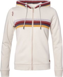 "The design of the jacket features a knitted striped pattern with a striking striped appliqué on the chest, which is rounded off by the chillazprint. The hood with drawstring in a striped look offers additional protection and style, while the welt pocket and ribbed cuffs and hem provide a casual look. The zigzag embroidery on the right shoulder seam and the color-coordinated hood lining underline the fashionable aspect of this jacket."
