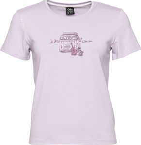 "Versatile women's T-shirt made of wool for leisure and sport, odor-neutral, lightweight and with a fashionable print."