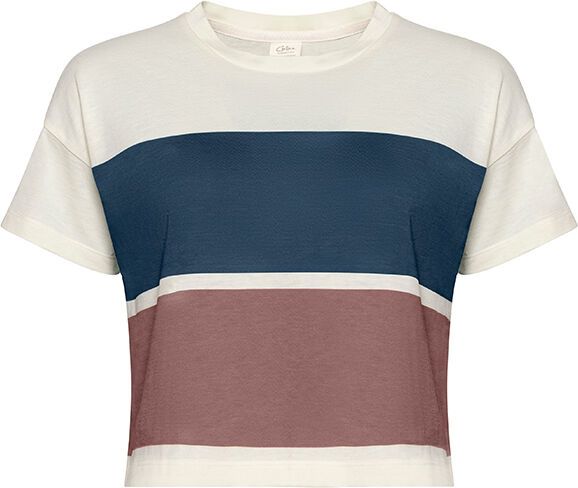 "The Paris T-Shirt from Chillaz with crop, essential for your everyday life in the city! The colorblock design with wide stripes is fresh and clean, while the loose fit is pleasantly loose. Thanks to soft cotton and fine modal, the material feels very soft on the skin, is breathable and makes every boulder session or yoga session relaxed."