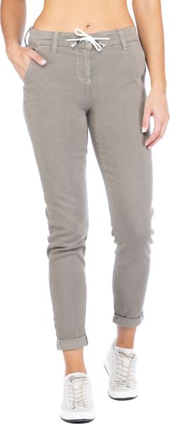 "Comfortable women's trousers with an urban design, ideal for sports and everyday wear, made from odour-neutral stretch denim with an elastic waistband."