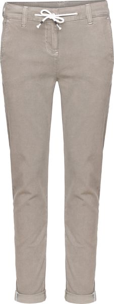 "With sophisticated design elements such as the print on the waistband and saddle, the zigzagseam on the back pocket and the drawstring with design elements, these trousers are a real eye-catcher. The short leg length with a turned-up hem and practical zip fastening emphasize the modern look. Two slit pockets at the front and a back pocket offer enough space for small everyday items, while the belt loops allow you to style the trousers individually."
