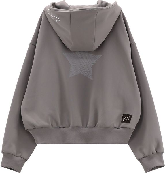 Stylish women's jacket with a loose fit and adjustable hood, ideal for hiking and everyday use.