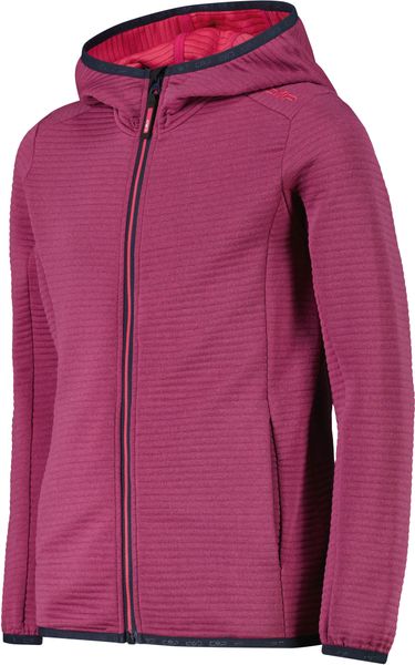 "The KID G FIX Hood Jacket by CMP is the ideal fleece for young adventurers who love being outdoors. This versatile garment is perfect for all outdoor activities and offers style as well as functionality thanks to its unique horizontal texture. The integrated hood protects against wind and weather, while the front zip with wind and abrasion protection strip offers additional comfort and protection."