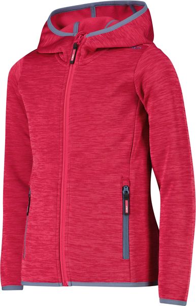 "The KID G Fleece Jacket FIX Hood by CMP is the ideal companion for little adventurers who love hiking. Made from high-quality Knit Tech fabric, this jacket offers a perfect balance of warmth and comfort. It is ideal as an outer layer on mild days or as a warming mid-layer in colder temperatures. Equipped with practical zipped pockets, it offers secure storage space for small items. The front zip has a chafe guard on the chin to prevent unpleasant chafing, while the elasticated cuffs and hem ensure a perfect fit. This jacket combines functionality and style and makes every outdoor adventure a comfortable experience."