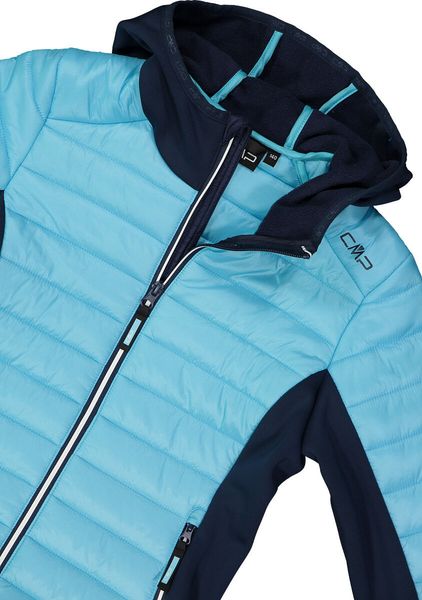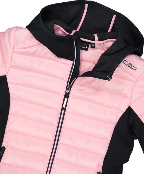 "The KID G Jacket Hybrid FIX Hood by CMP is the ideal companion for little adventurers who don't want to miss out on their outdoor activities even on cold and damp days. This hybrid jacket specially developed for girls combines functionality and style to ensure optimum comfort when hiking. With its 200 gram Feel-Warm-Flat padding, it offers excellent insulation against the cold without compromising breathabilityu00e4t."