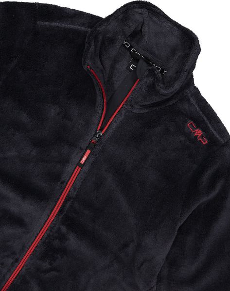 "The KID Jacket by CMP is the ideal choice for adventurous children who like to play outdoors and want to stay warm and protected. This jacket offers excellent heat retention thanks to the highloftfleecematerial, trapping body heat while giving a striking outdoorlook. The front zipper is partly equipped with an inner storm flap and features an anti-rub-reiu00dfverschluss garage, which provides additional comfort."