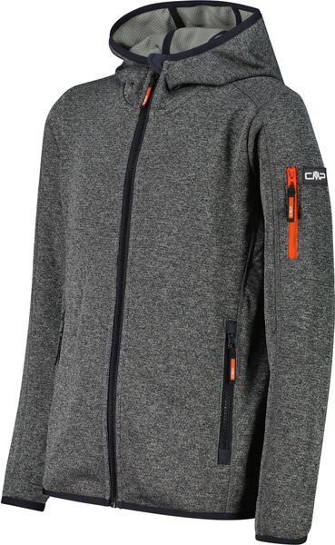 "The KID Jacket FIX Hood by CMP is the ideal choice for little outdooradventurers who value comfort and functionality. This hooded jacket made from mu00e8lange fleece combines a technical look with a sophisticated fabric blend that offers a unique mu00e8lange effect. Thanks to its lightweight and breathable material, the jacket is perfect as a mid-layer or outer layer in the warmer months of the year. The ergonomic cut ensures an optimal fit that offers plenty of freedom of movement, which is particularly beneficial for active children"