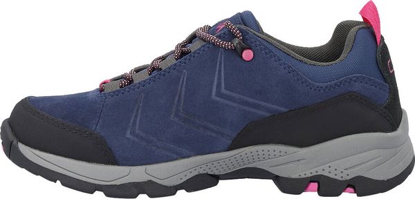 "The Kids Melnick Low Trekking Shoes WP from CMP are the ideal choice for adventurous children who like to go on longer trekking tours. These robust shoes are characterized by their high-quality workmanship made of genuine suede and offer reliable protection against moisture thanks to the CLIMAPROTECT membrane. This keeps little feet dry at all times, even in adverse weather conditions. The lowcutshank and the normal lacing system ensure optimum adjustment to the foot, while the protective cap offers additional protection"