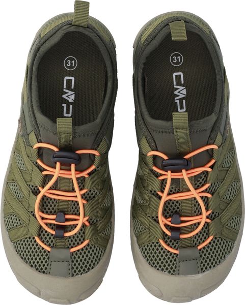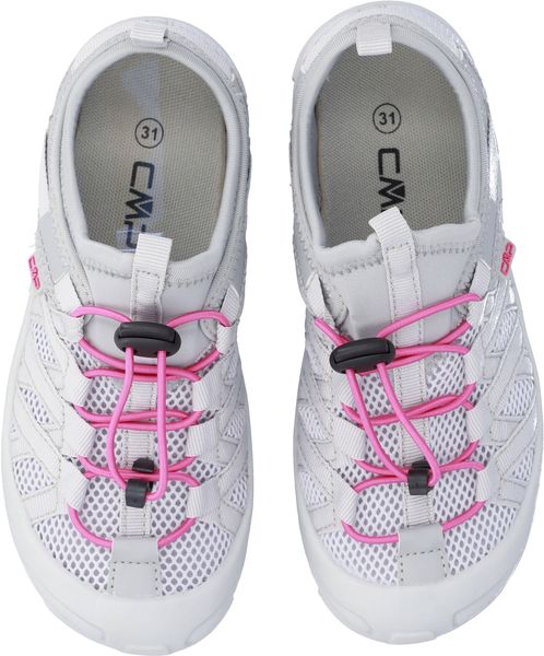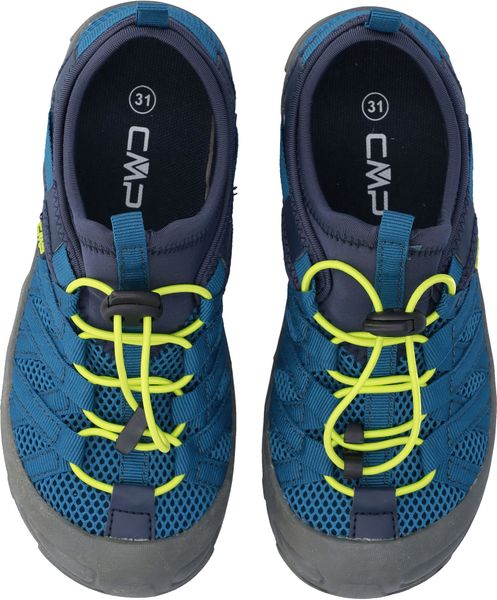 "The Kids Rokky sandals from CMP are the perfect companion for little adventurers who love being outdoors. These closed children's sandals offer optimum protection for the toes and are specially designed for hiking activities. Weighing just 89 g in size 31, they are particularly light and comfortable. The PU upper material is equipped with mesh and interwoven straps on the instep, which not only ensures an optimal fit, but also a secure hold with every step."