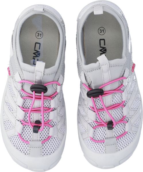 "The Kids Rokky sandals from CMP are the perfect choice for little adventurers who need secure support and comfort when hiking. These closed sandals are specially designed for children and offer an optimal fit and excellent support thanks to their robust PUupper material and interwoven straps on the instep. The light weight of just 89 grams (size 31) makes them the ideal companion for long days outdoors."