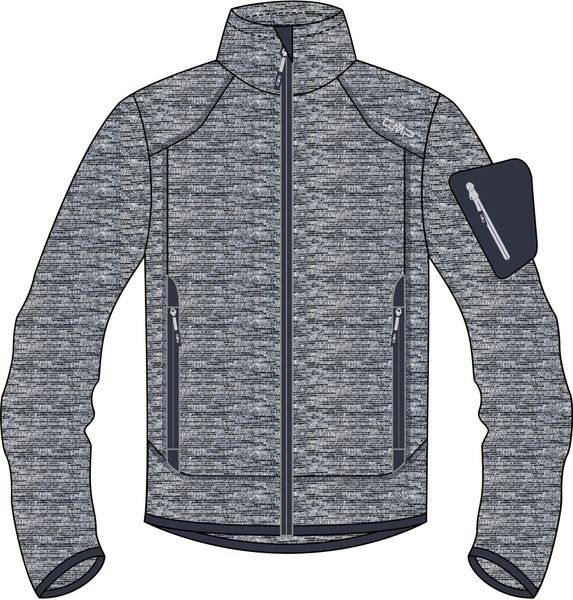 "The MAN fleece jacket from CMP is a versatile garment that is ideal for outdooractivities such as hiking. Made from the innovative Knit-Tech fabric, the jacket offers the look of mottled wool and gives you an authentic outdoorstyle. The jacket is the result of the F.lli Campagnolo Group's long-standing tradition of craftsmanship and impresses with its high-quality finish."