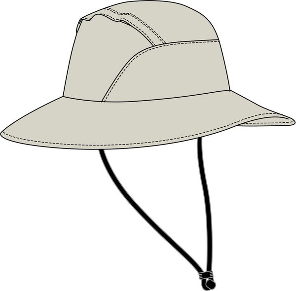"Water-repellent, wide-brimmed hat with adjustable drawstring and partially sealed seams for optimum protection."