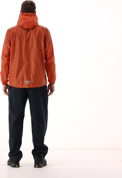 "The jacket features welded seams that provide additional protection against moisture penetration. Practical details such as the adjustable, fixed hood and the double Velcro fasteners-Bu00fcndchen provide additional comfort and protection. Thanks to the pack-in-pocket design, the jacket can be folded up and stowed away easily, making it the perfect companion for when you're out and about."