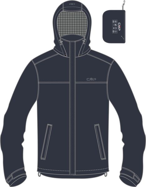 "Discover the perfect outdoorcompanion with this waterproof men's jacket from CMP. The MAN Jacket Snaps Hood is made from durable ripstop material and offers optimum protection from wind and rain thanks to its WP 10,000 and MVP 4,000 technology. The fully welded seams and detachable, drawstring-adjustable hood guarantee that you will stay dry in any weather."