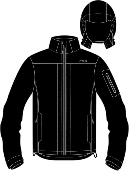 "Discover the versatile MAN Jacket Zip Hood from CMP, an ideal choice for all outdoorenthusiasts who want to be well equipped even in changeable weather. This men's jacket, made from lightweight softshell material weighing 180 g/mu00b2, is specially designed for outdoor excursions. Thanks to the three-layer fabric structure and the innovative Clima Protect microporous thermal coating, the jacket offers optimum protection against wind and rain while remaining breathable."