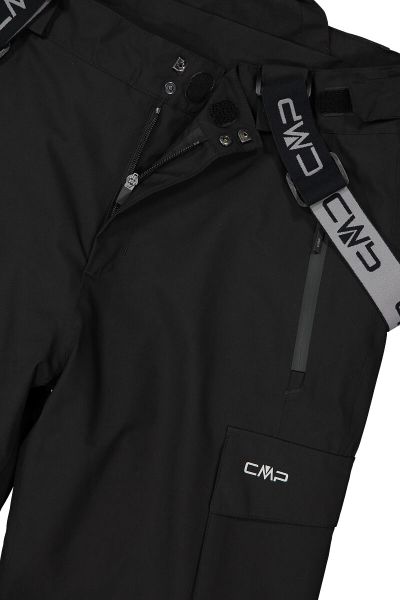 "The MAN Salopette Cargo from CMP is the ideal ski trousers for men who don't want to compromise on comfort and functionality even in extreme weather conditions. Equipped with the innovative Clima Protectu00ae membrane, these trousers offer impressive waterproofness of WP 10,000 and breathability of MVP 10,000, making them an indispensable companion on the slopes. The welded seams and reinforced fabric provide additional protection against moisture and abrasion."