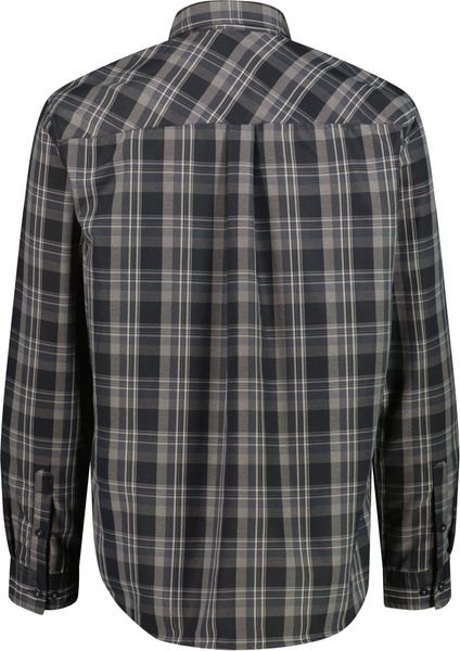 "Functional long-sleeved shirt with check pattern and dry-function technology for dry comfort during outdoor activities."