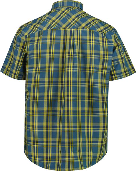 "Stylish short-sleeved shirt with check pattern, ideal for outdoor activities, offers sun and odor protection as well as breathability."