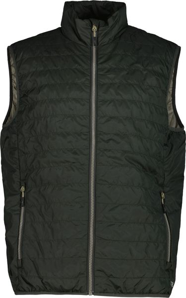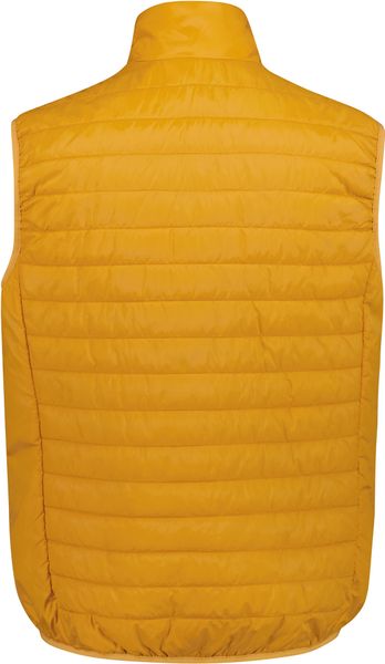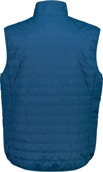 "Heat-insulating, water-repellent gilet with elasticated cuffs and practical zippered pockets for outdoor adventures."