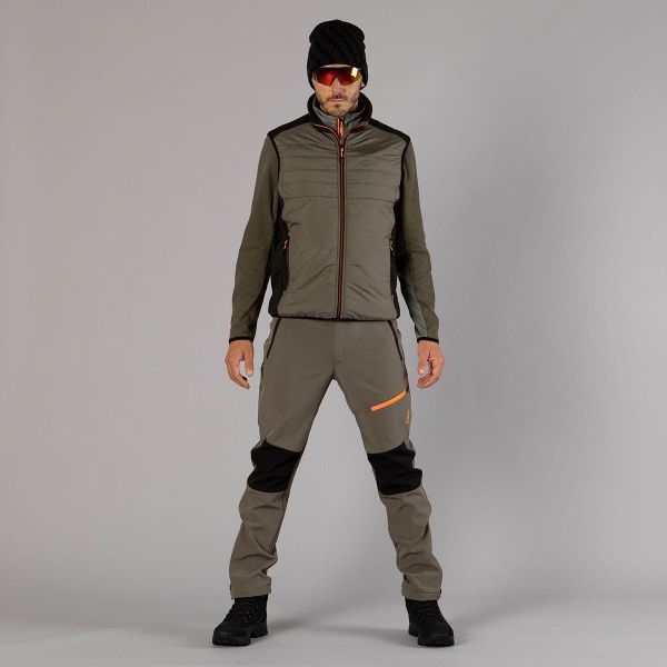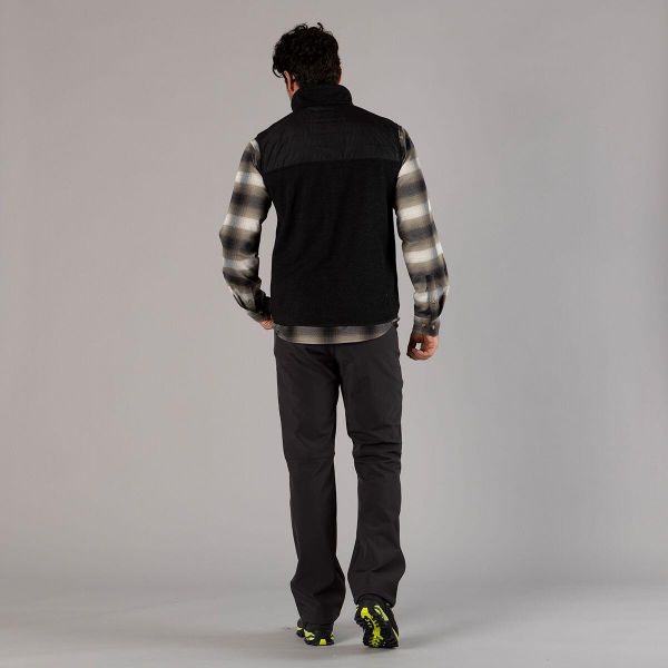 Hybrid vest made of soft and comfortable Knit Tech Fleece. On the front of Poly Pongee a lightweight Feel Warm Flat padding to keep the body warm even when wet. Elastic hem and hood, front zipper with wind and scuff guard, two side pockets with zipper.