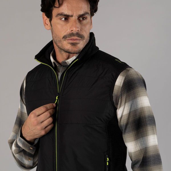 Soft hybrid vest with Feel Warm Flat padding and Knit Tech fleece for optimum protection and comfort.